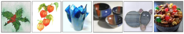 Works for sale included paintings, prints, glass pieces, pottery, stained glass decorations, Christmas & greetings cards, artisan cakes, chocolates and preserves – of which one was a whiskey marmalade!